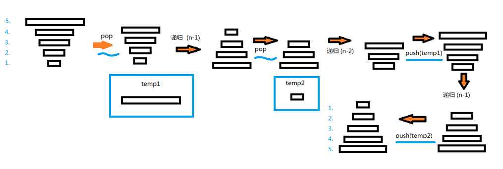 递归函数结束的条件:是当栈为空或者栈里只有一个元素的时候,return。